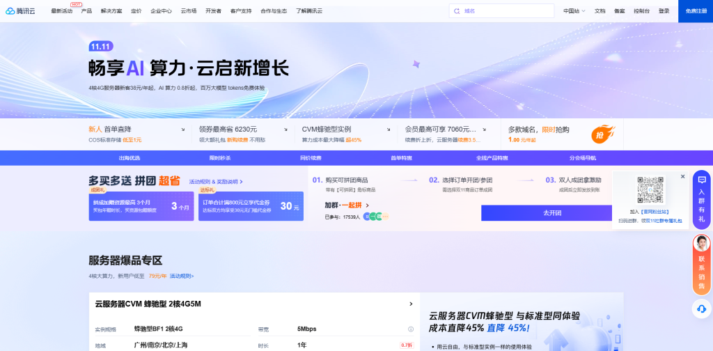 腾讯云2025双十一促销地址:https://www.qcloud.com/